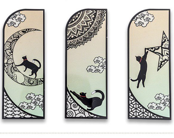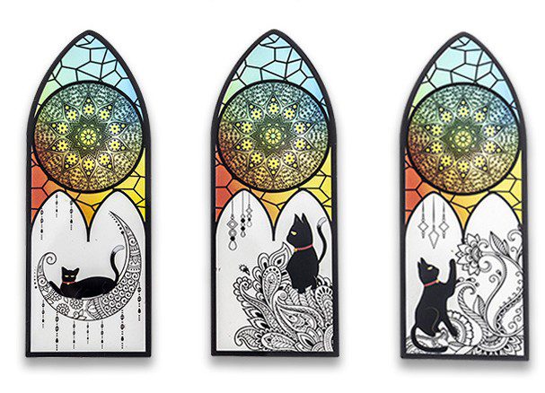 زخرفة, نافذة زجاج, قمر, قط جالس